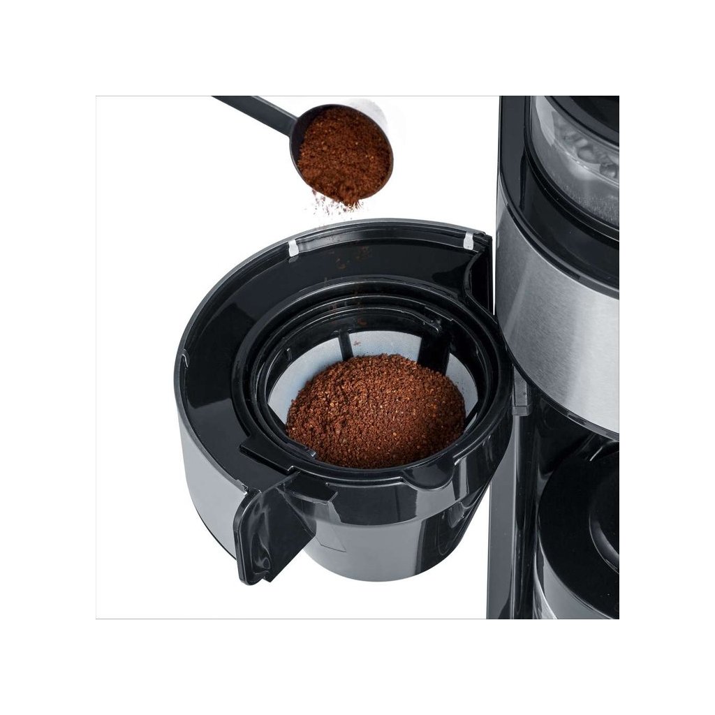 ▪ Cafetière avec moulin à café intégré (mécanisme à cône en acier inoxydable) pour une dégustation parfaite de grains de café fraîchement moulus