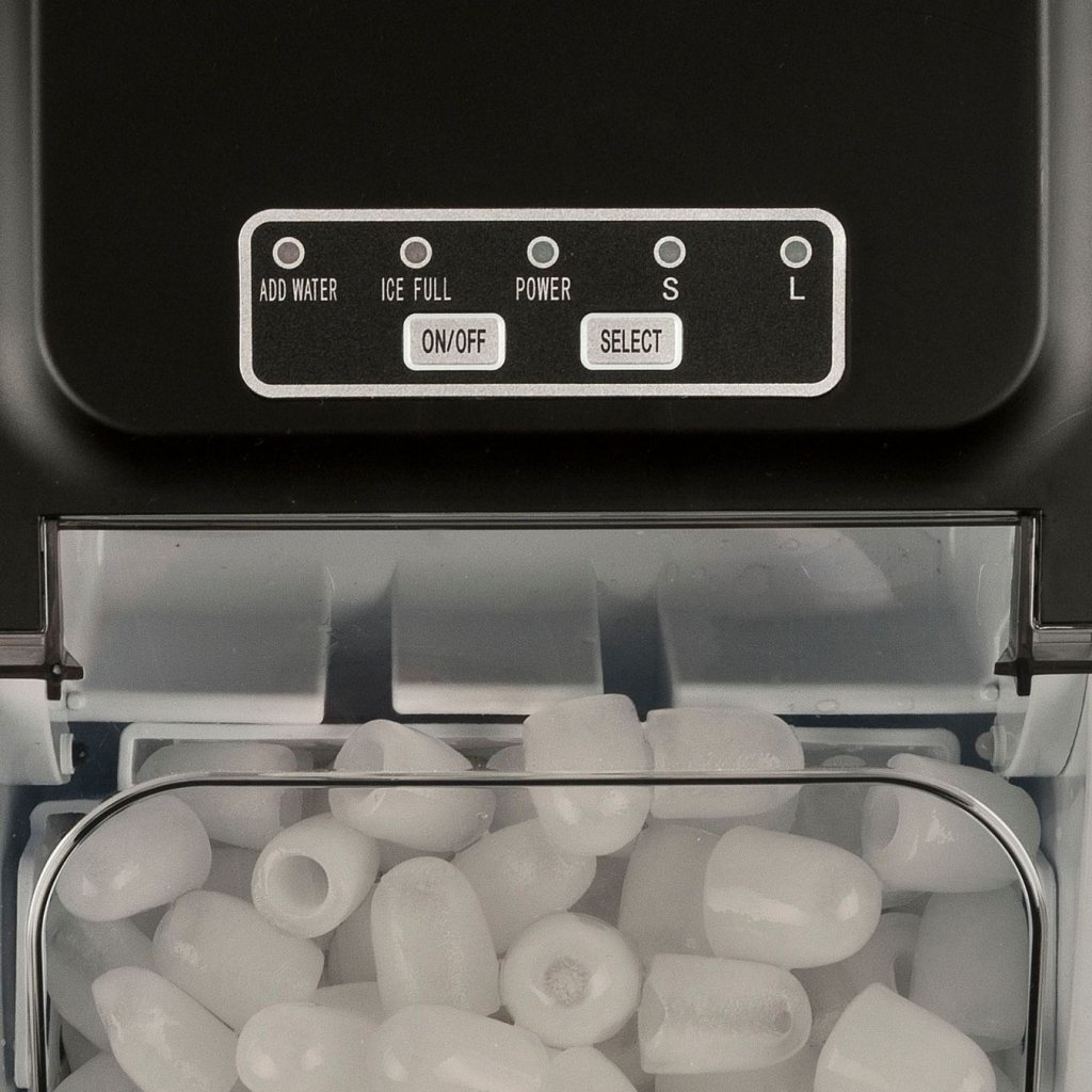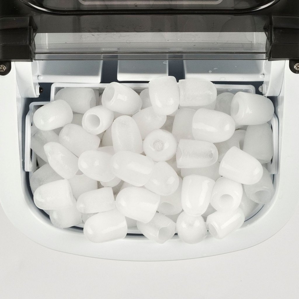 - le réservoir d'eau a une capacité de 1,2 litre et le bac à glace peut contenir jusqu'à 600 grammes de cubes