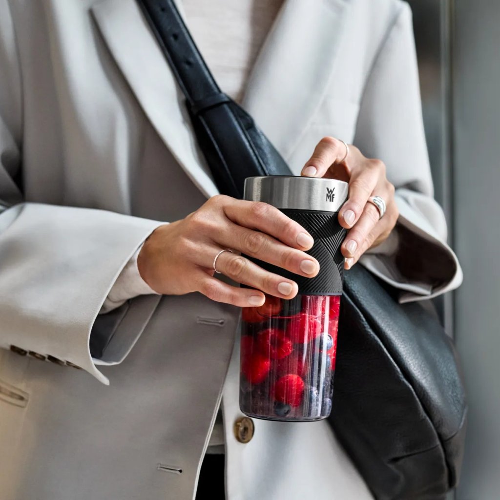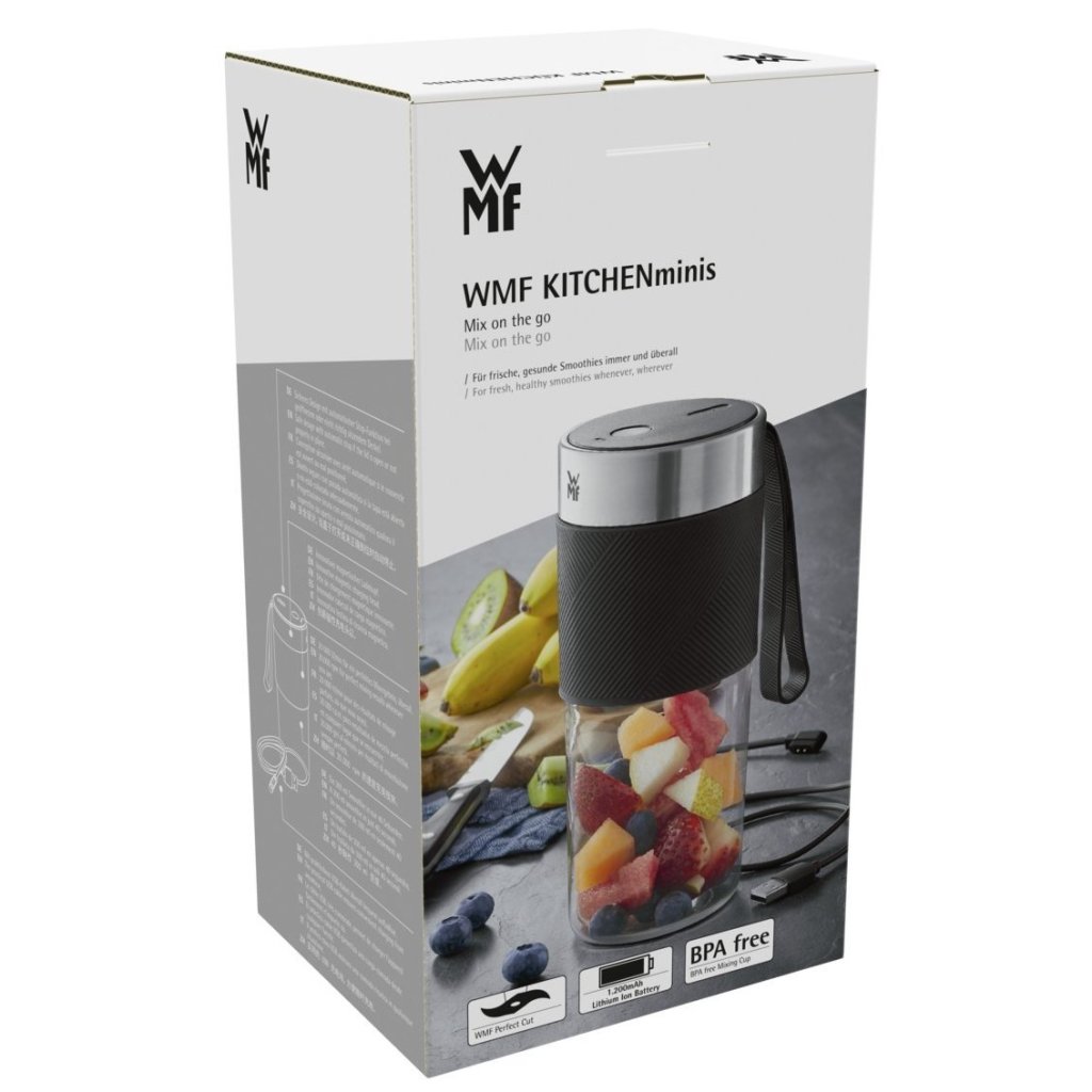 - Le mixeur de voyage WMF KITCHENMINIS est un outil pratique conçu pour préparer des smoothies frais partout où vous êtes en déplacement