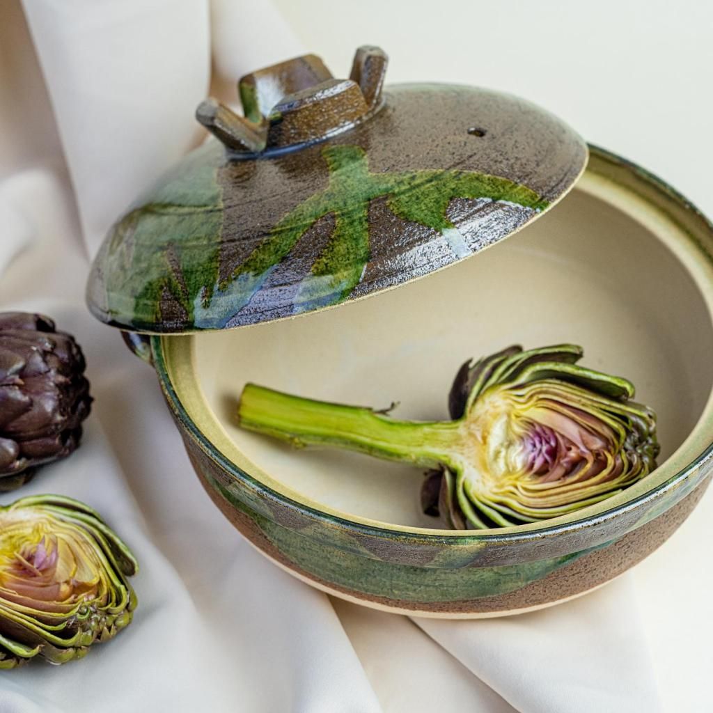 - La combinaison d'un vert profond et d'un émail brun crée des transitions spectaculaires qui rappellent la mousse et la terre de la forêt, apportant une esthétique naturelle à la cuisine.