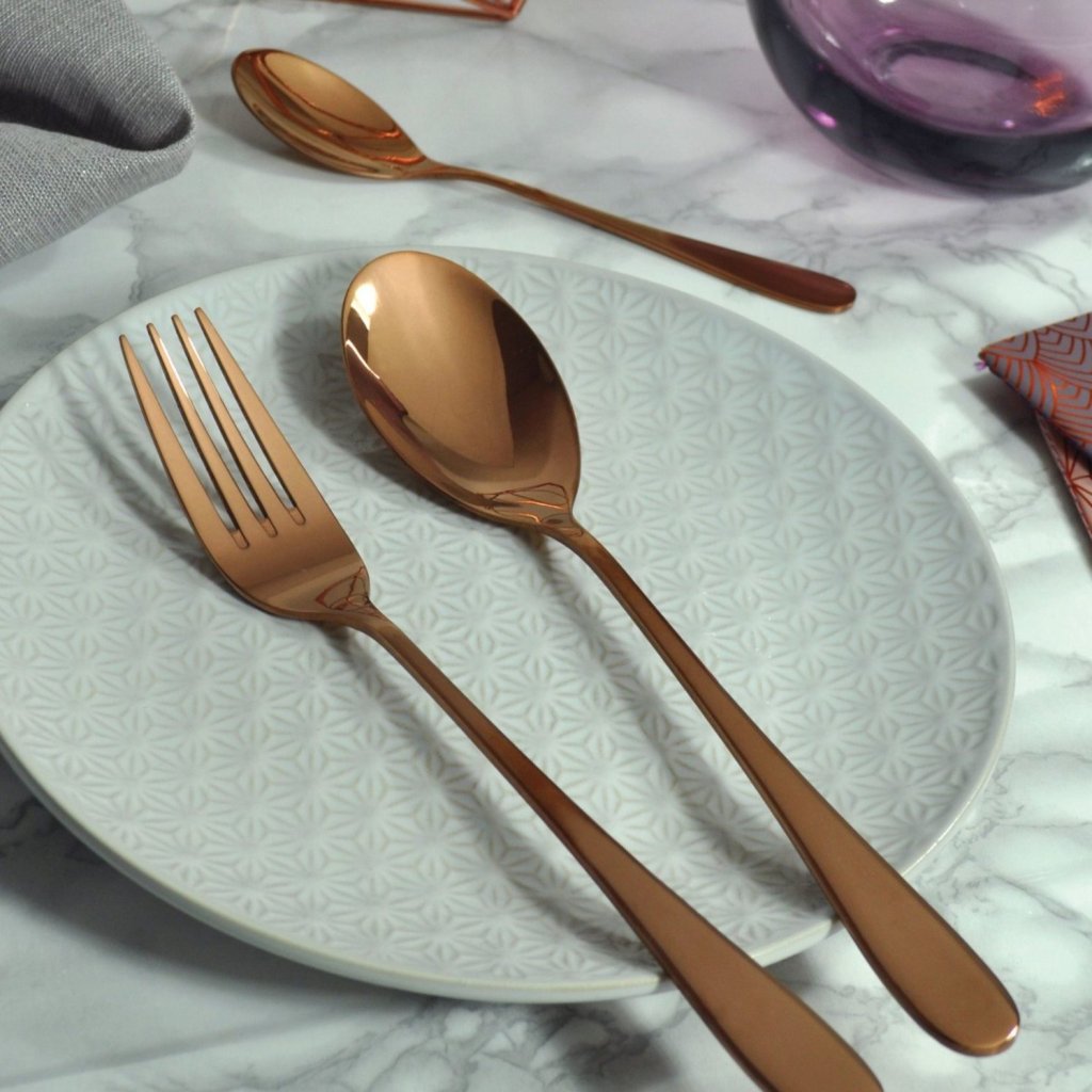 - ménagère PRINCESS AMBER apporte une élégante teinte ambrée à la table, évoquant l'atmosphère des soirées d'été au bord de la mer