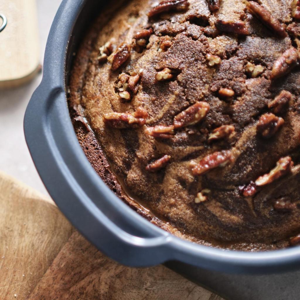 - Le moule est conçu pour être empilé de manière ordonnée avec un plus petit moule à tarte de la gamme NEST BAKE, sans rayer la surface.
