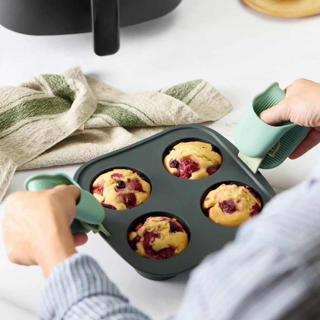 - Moules à muffin Lékué est idéal pour préparer rapidement et facilement quatre muffins moelleux directement dans la friteuse à air chaud.