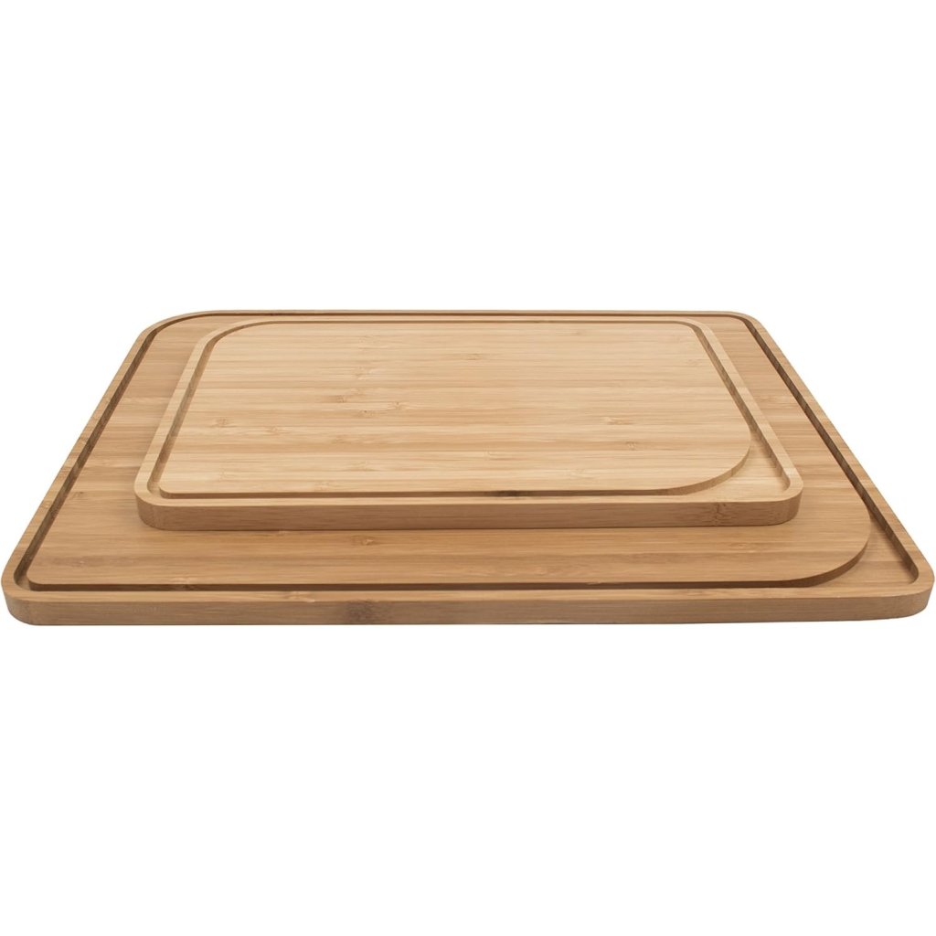 - planche à découper double face dont l'une des faces est dotée d'une rainure sur le bord pour recueillir les jus et les miettes