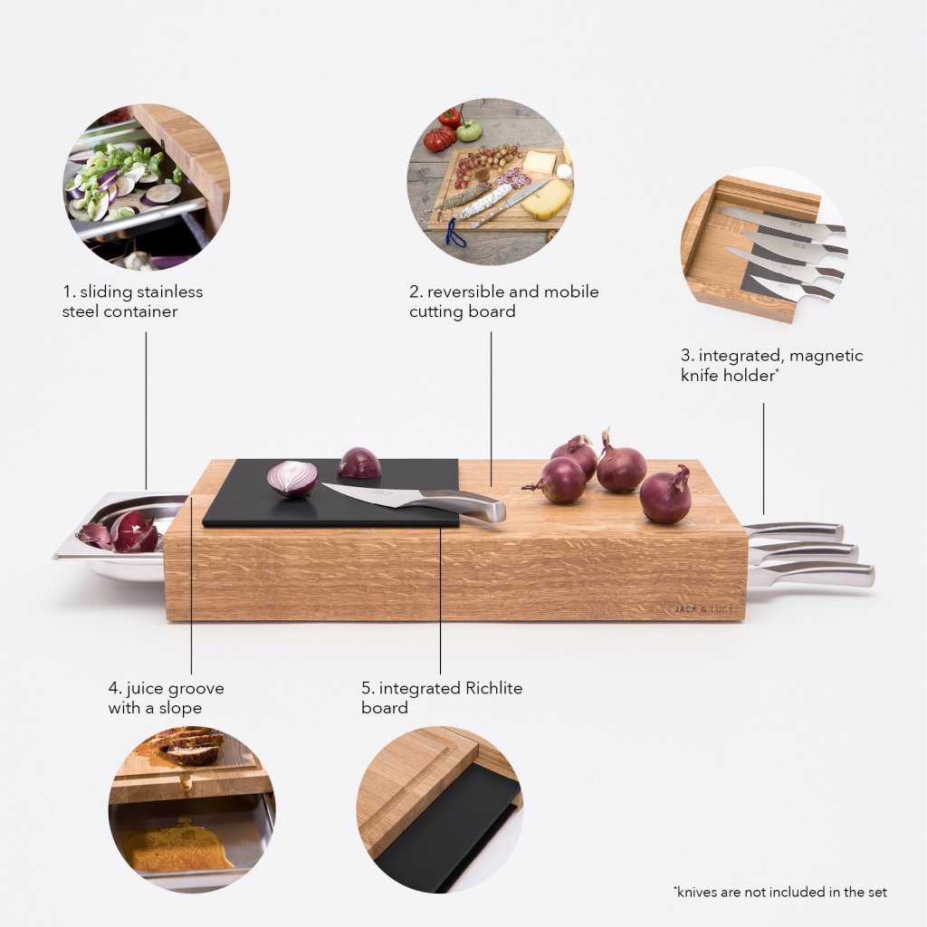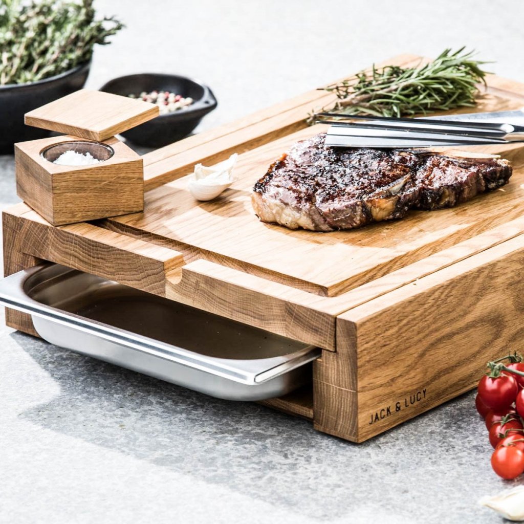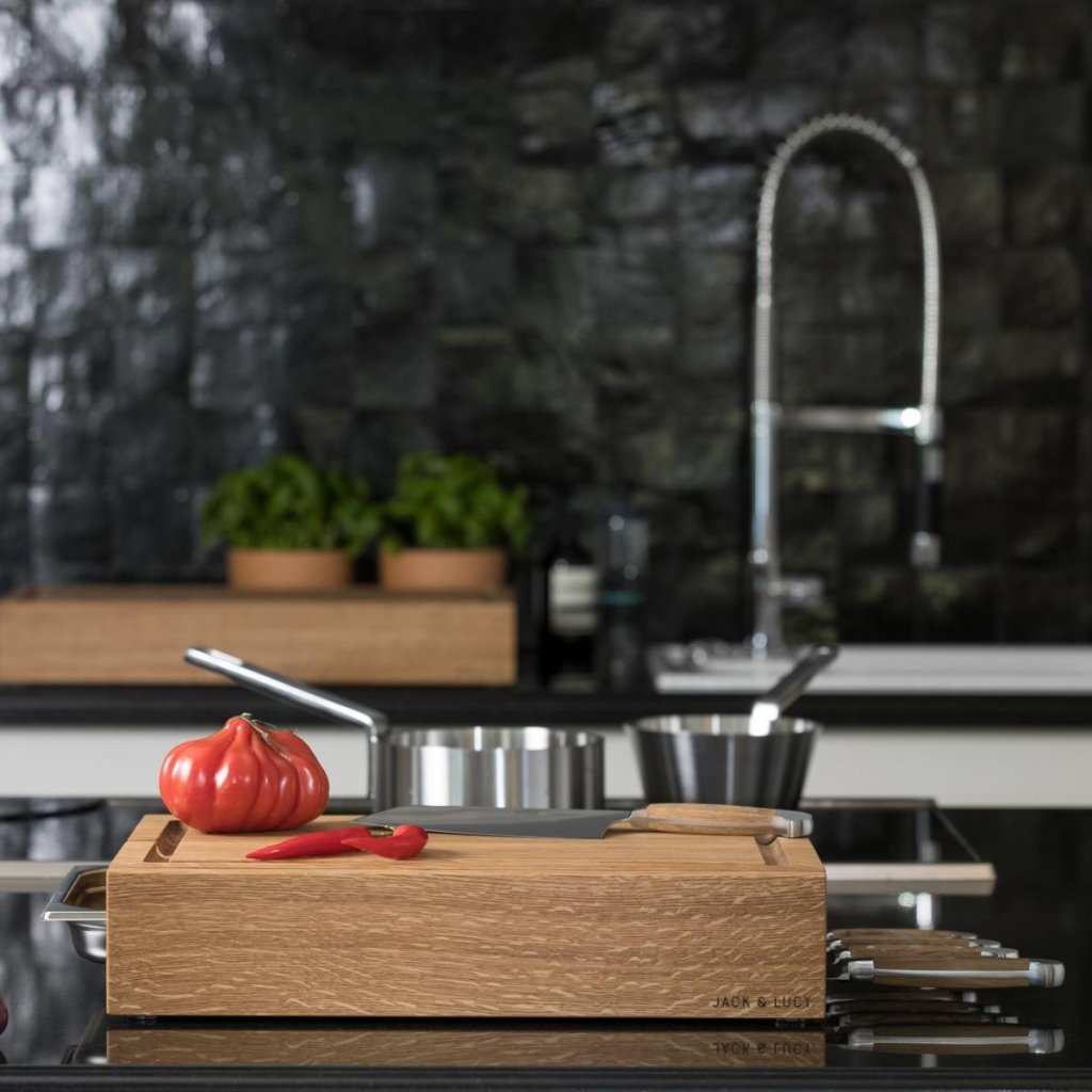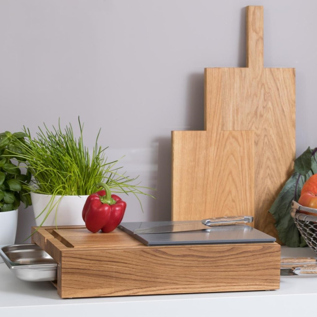 Planche à découper ONE LONG GRAIN 45 x 33 cm, avec tiroir, bois de chêne, Jack & Lucy