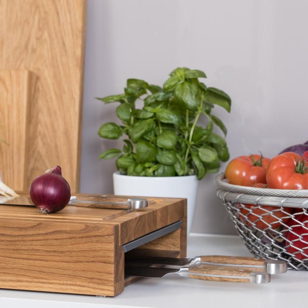 - barre de couteaux magnétique intégrée (les couteaux présentés sur les photos ne sont pas inclus)