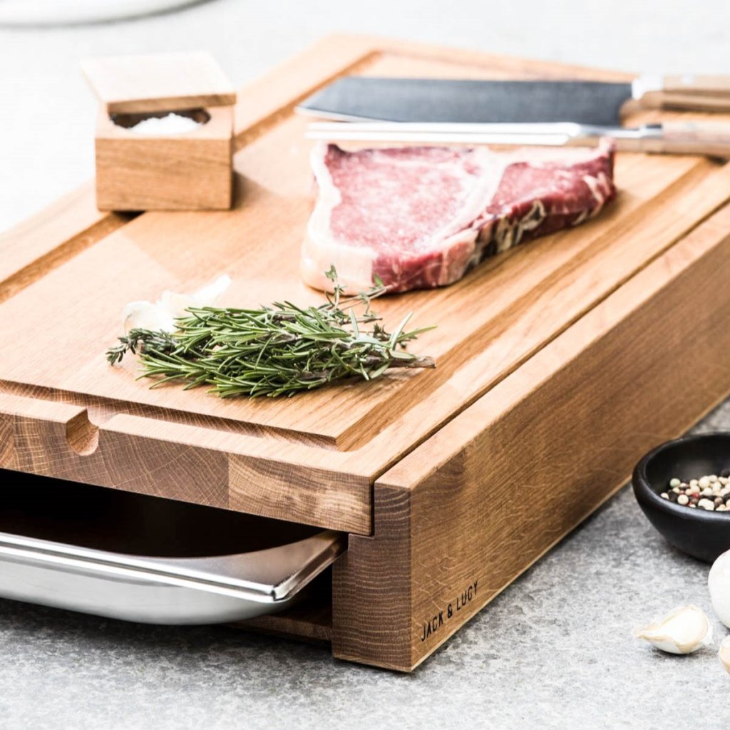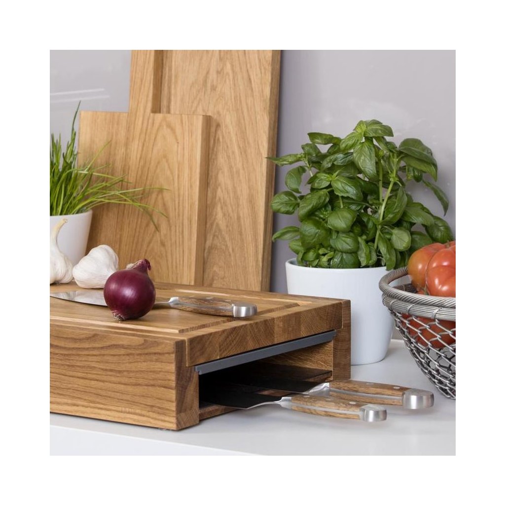 Planche à découper ONE LONG GRAIN 60 x 33 cm, avec tiroir, bois de chêne, Jack & Lucy