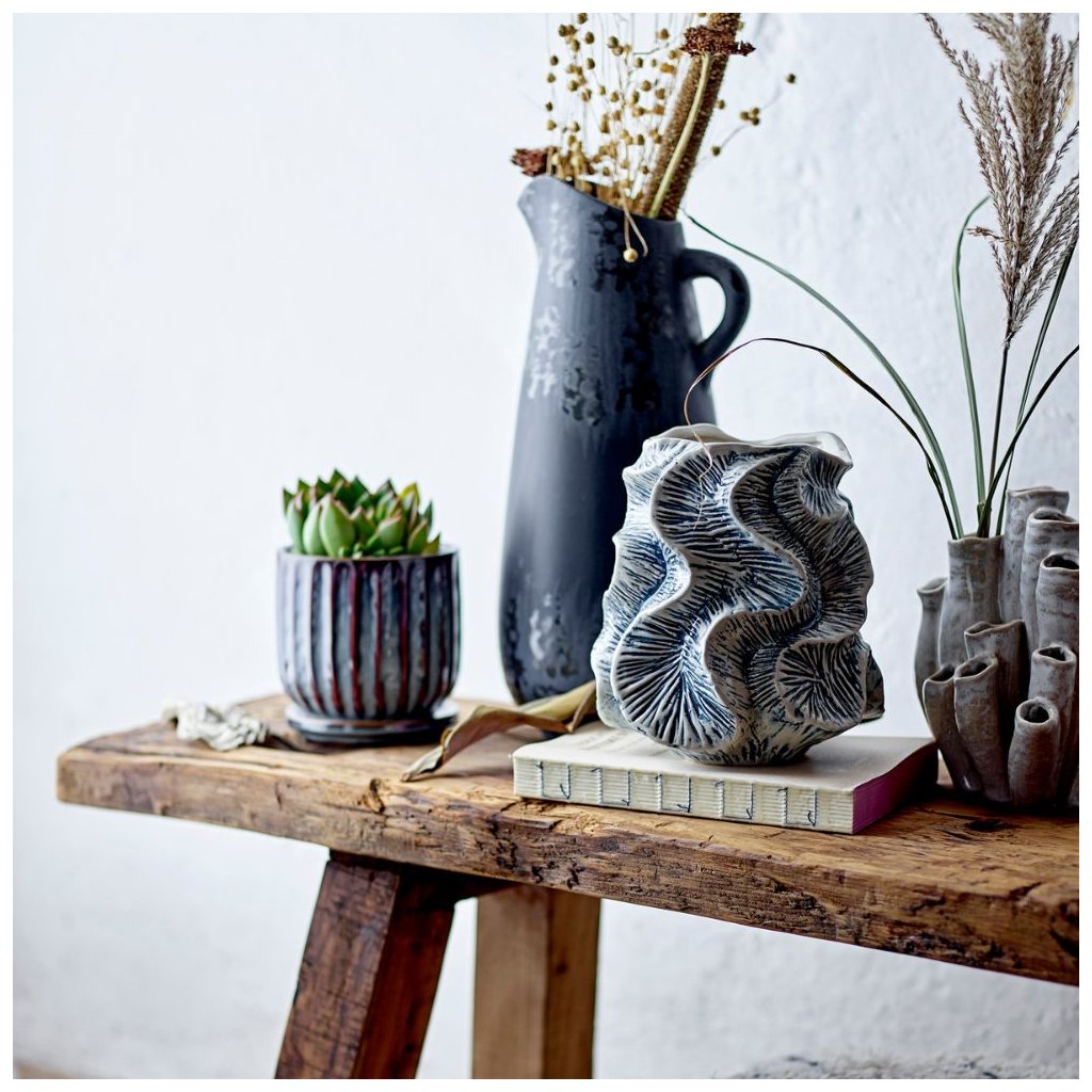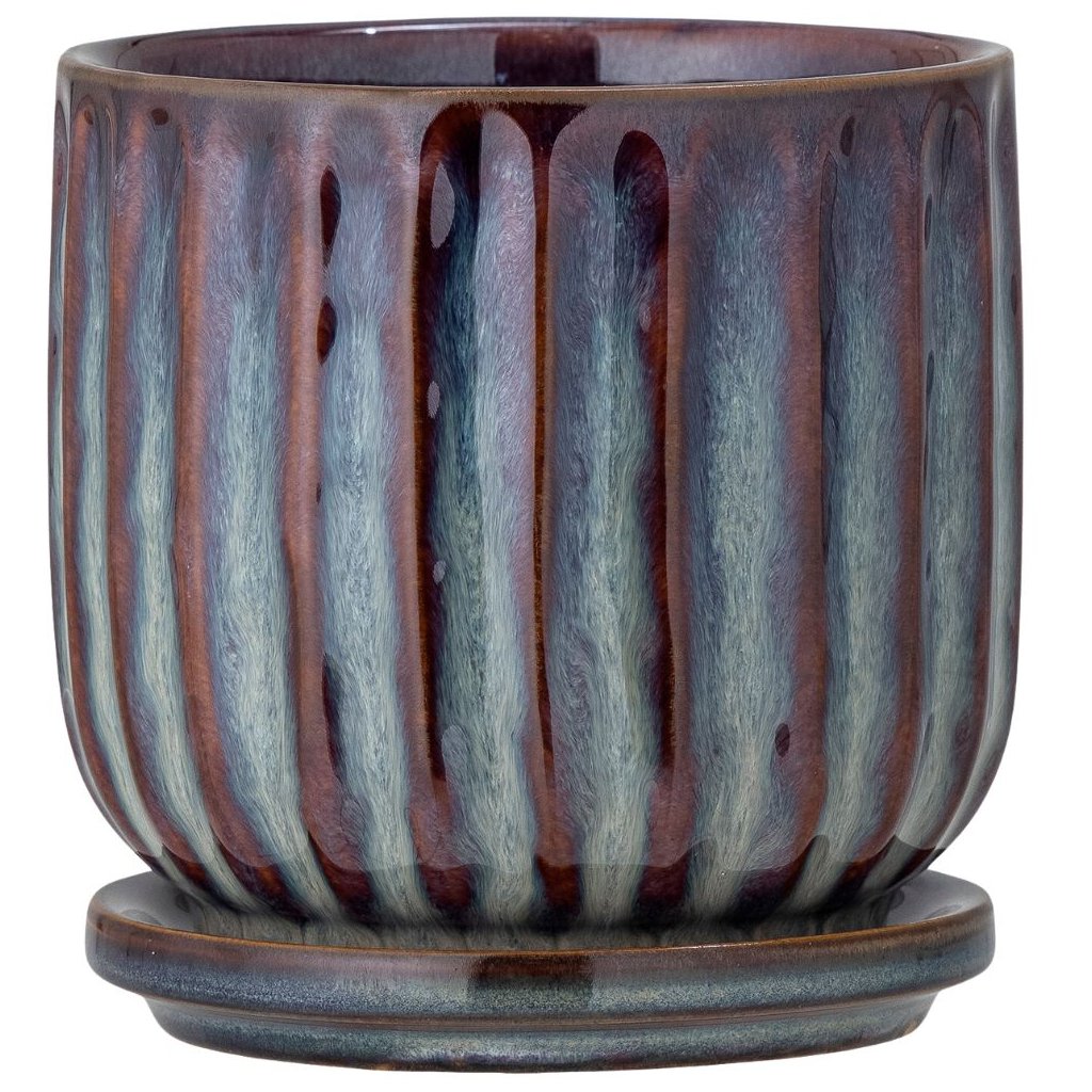 Pot de fleur avec soucoupe DRAGO 12 x 12 cm, bleu, grès, Bloomingville