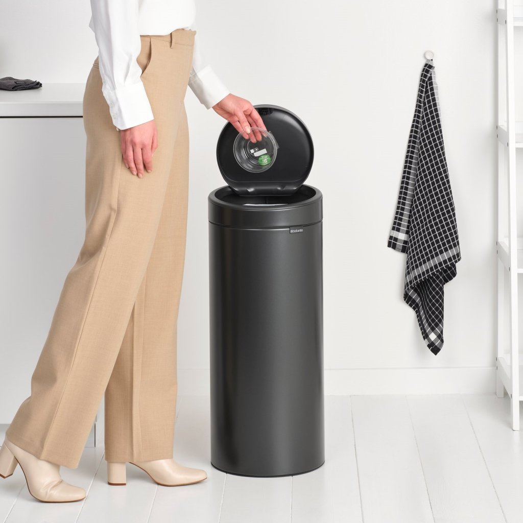 Poubelle à couvercle tactile TOUCH BIN NEW 30 l, gris confidentiel, acier, Brabantia