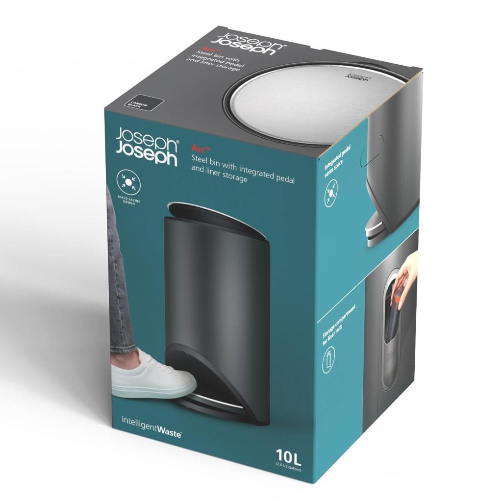 Poubelle à pédale ARC 30151 10 l, noir, acier, Joseph Joseph