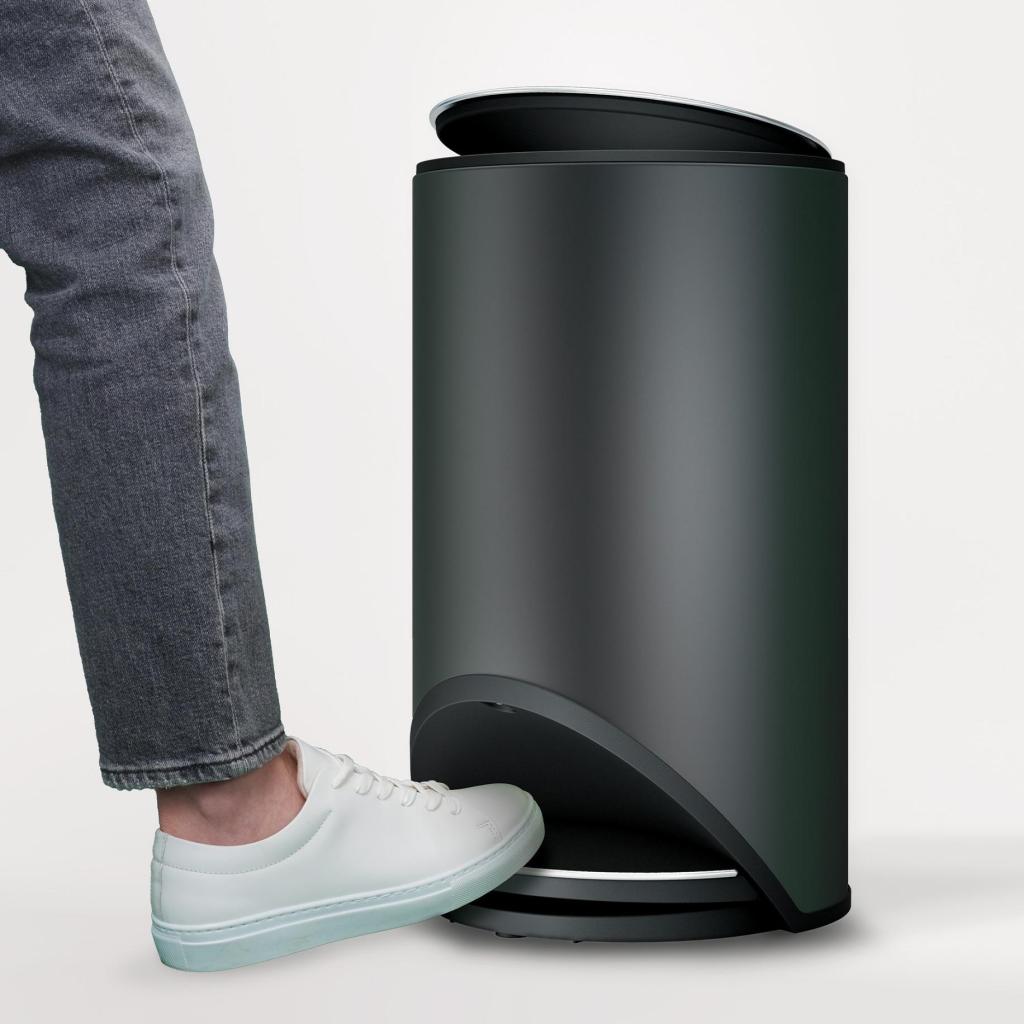 - Poubelle à pédale ARC dans une élégante finition noire sert de solution pratique et élégante pour l'élimination hygiénique des déchets dans la cuisine, la salle de bain ou l'espace de travail.