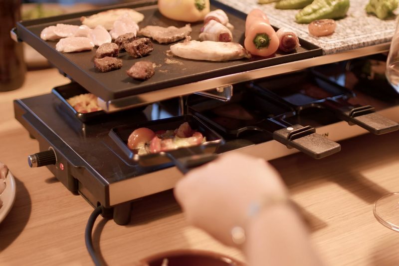 Comment faire sortir les enfants de leur chambre pour un dîner en famille ? Rien de tel qu’une raclette pour créer du lien. Et pour vous, c’est un dîner copieux sans efforts ou presque ! L’appareil à raclette a deux parties - le haut fonctionne comme un gril classique sur lequel vous pouvez saisir la viande, la partie inférieure peut contenir 6 à 8 mini poêles. Apportez tous les ingrédients à table et chacun peut préparer sa poêle selon son goût. Poêle à la main, on oublie les téléphones !