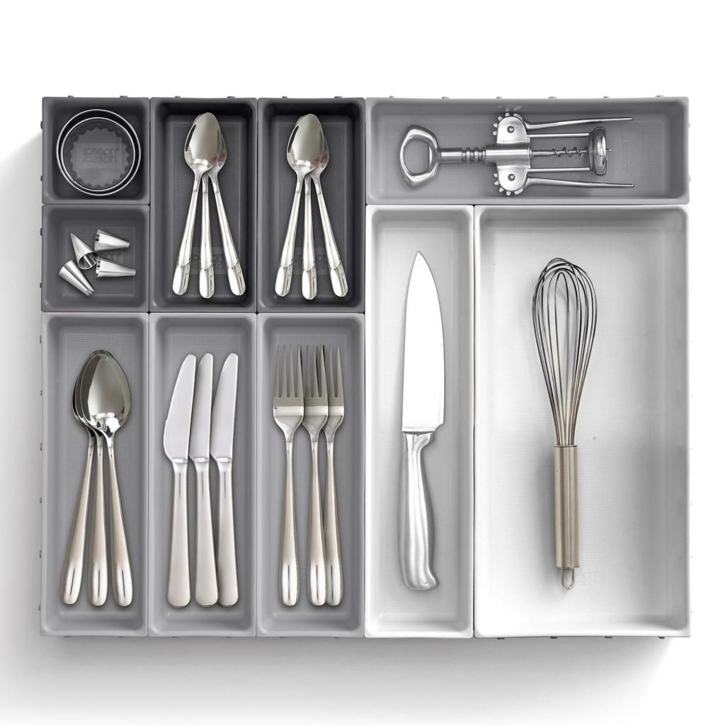 - L'organisateur de tiroir Joseph Joseph BLOX offre un système modulaire pratique qui aide à organiser de manière claire les couverts, les ustensiles de cuisine, les fournitures de bureau ou les petits outils.