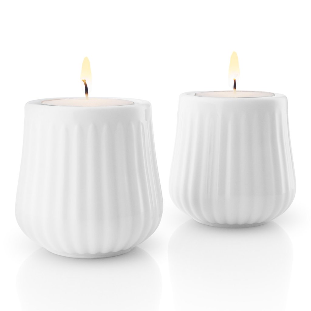 L'élégant ensemble de bougeoirs de la série de porcelaine Legio Nova, d'un blanc intemporel, est conçu pour les bougies chauffe-plat. Utilisez-les pour créer une atmosphère chaleureuse à la maison