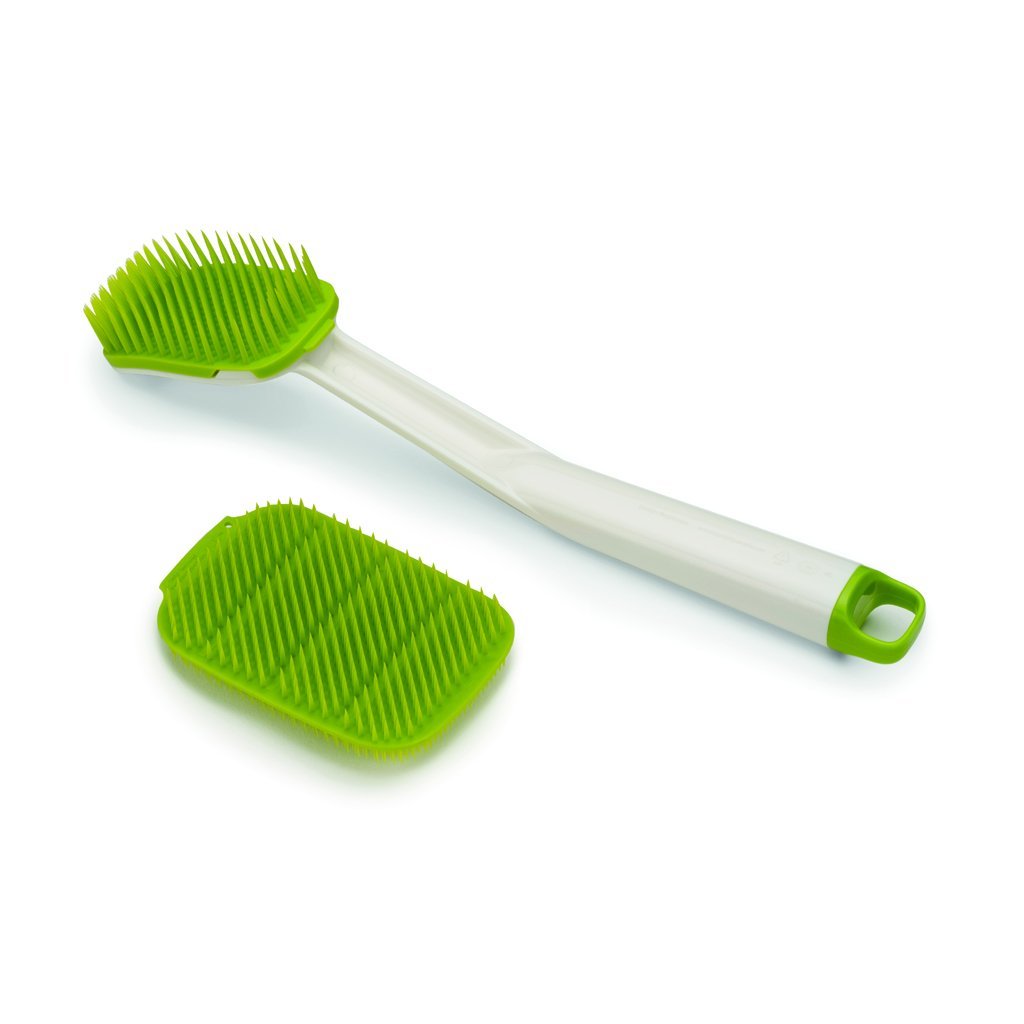 Brosses de lavage innovantes JOSEPH JOSEPH CleanTech avec des poils en plastique durable. L'eau s'écoule rapidement des poils et s'assèche. Les brosses sont faciles à nettoyer - à la main ou au lave-vaisselle. Les poils ne rayent pas la surface de la vaisselle. Idéal pour laver les plats à revêtement antiadhésif, les plaques de cuisson, les assiettes, les bols et les couverts. Ne convient pas au lavage des couteaux tranchants. Le set comprend une brosse avec manche et une brosse double face avec des poils doux et durs.