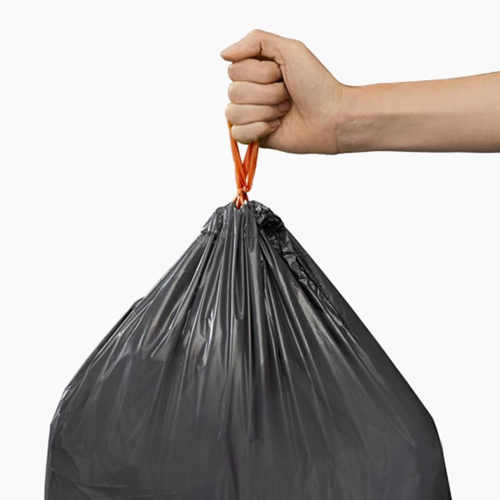- Le système de cordon de serrage facilite également le transport du sac lors du retrait des déchets du domicile ou de l'espace de travail.