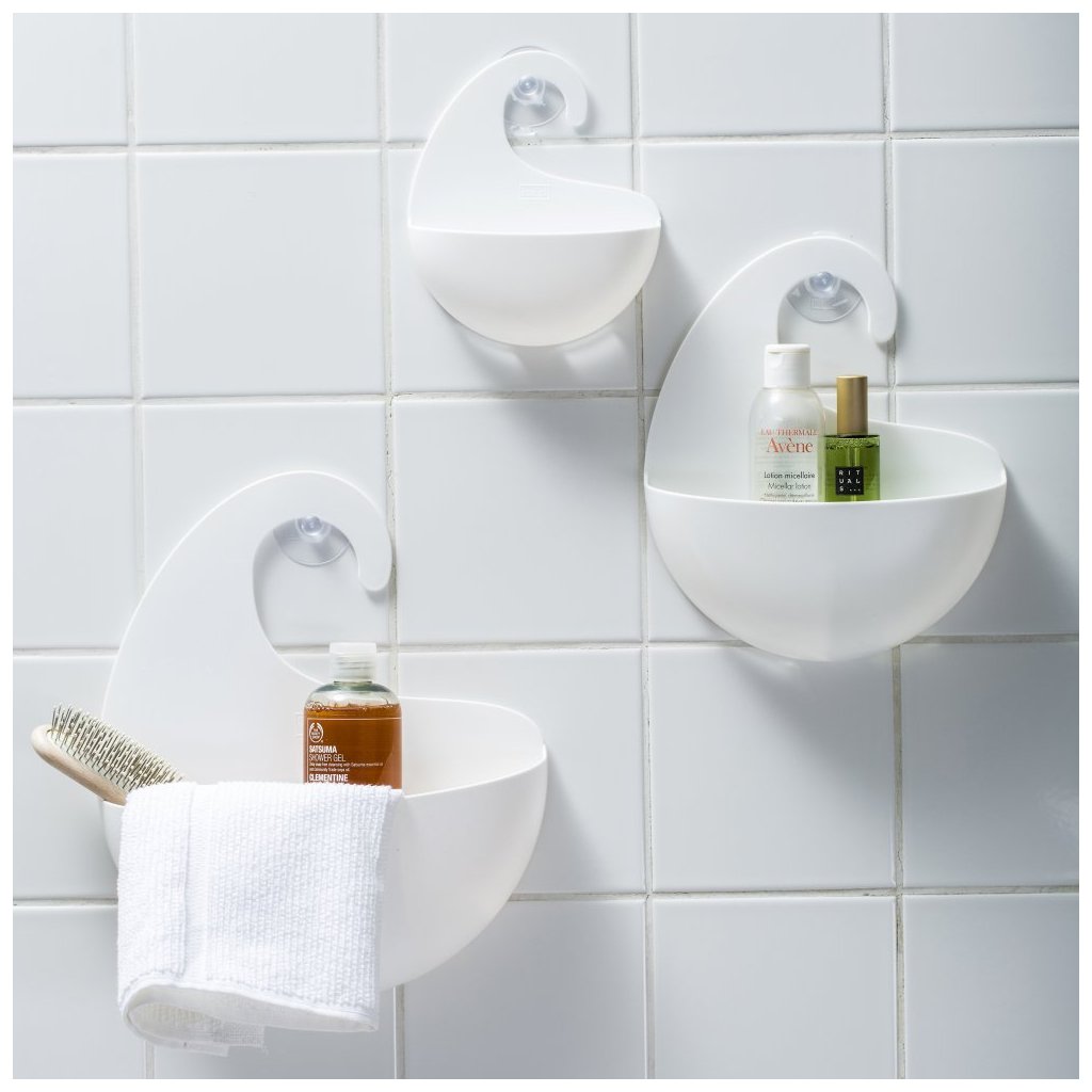 - accroché avec un crochet au robinet de la douche, à d'autres appareils sanitaires ou à des crochets muraux