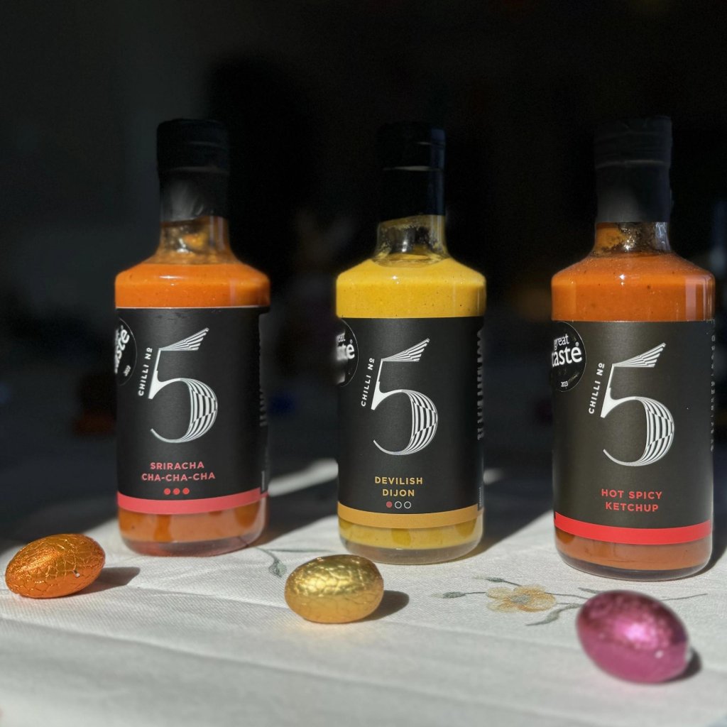 - La boîte correspond au style visuel général de la marque Chilli No5 et fait de cette sauce un cadeau approprié pour tout amateur d'assaisonnements non conventionnels.