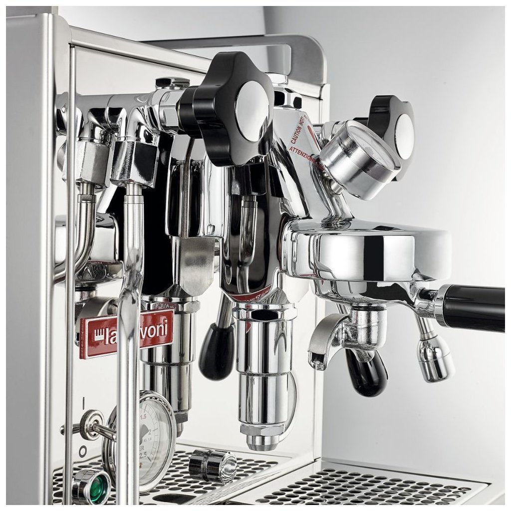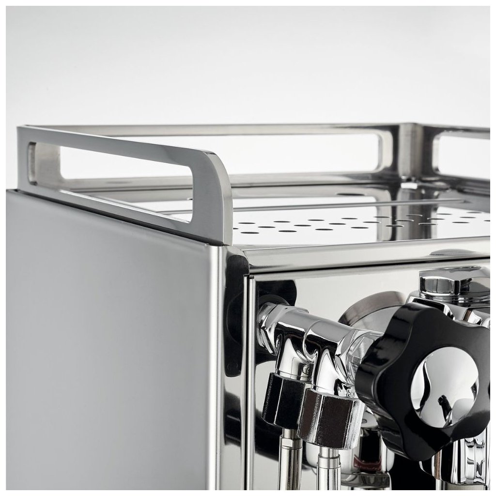 Elle est équipée d'une chaudière en cuivre et isolée pour une économie d'énergie et une stabilité thermique accrue, de deux manomètres pour vérifier la pression de la pompe et de la chaudière afin de contrôler le processus d'extraction correct de l'infusion, d'une pompe rotative professionnelle (pas de pompe à vibration) avec réglage externe de la pression et de l'option de connexion directe à l'eau ou de connexion à un réservoir d'eau douce de 2,9 litres. Le niveau d'eau, tant dans le réservoir que dans la chaudière, est contrôlé électroniquement pour votre confort. L'ensemble comprend deux paniers-filtres - pour 1 tasse et 2 tasses (7 et 16 grammes). La pression de brassage peut être réglée manuellement en tournant la vis de réglage de la pression de la pompe (la pression change d'environ 0,1 atm pour chaque tour complet de la vis).