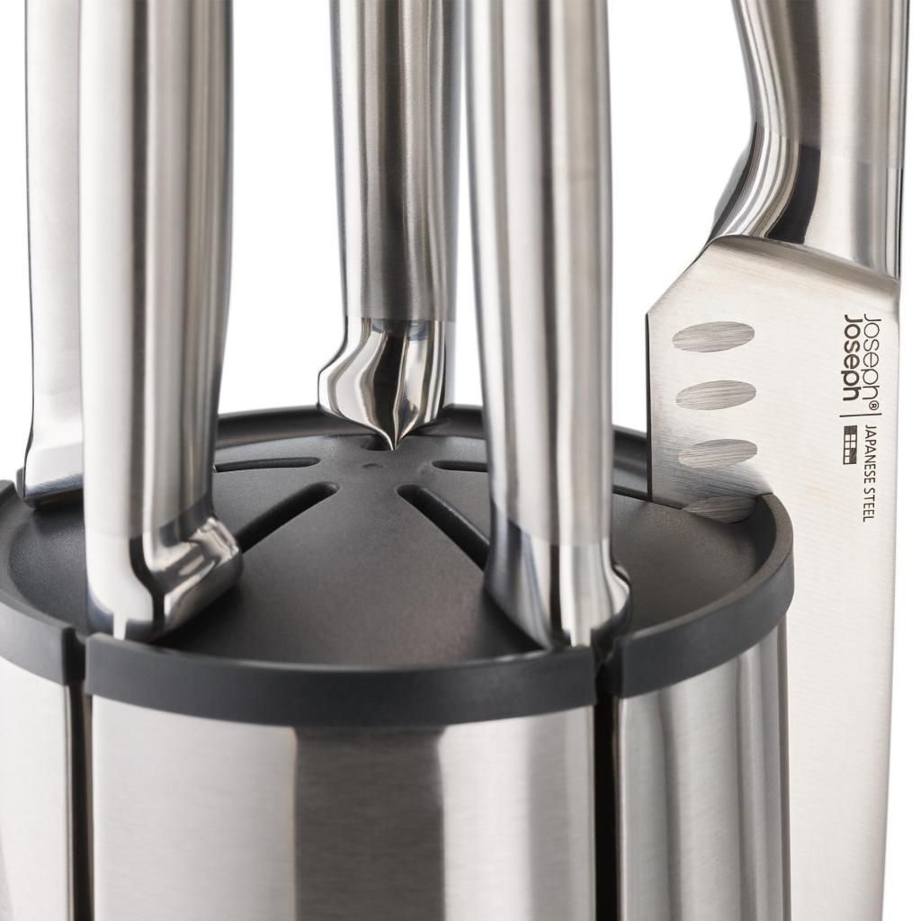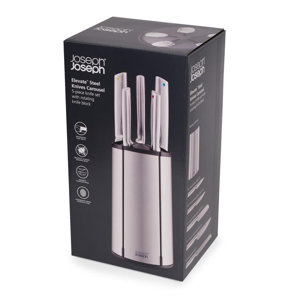 - L'ensemble de couteaux de cuisine Joseph Joseph ELEVATE STEEL avec son support rotatif représente une solution complète pour la préparation quotidienne des ingrédients, vous permettant de garder tous les couteaux importants bien rangés et immédiatement accessibles pendant la cuisson.