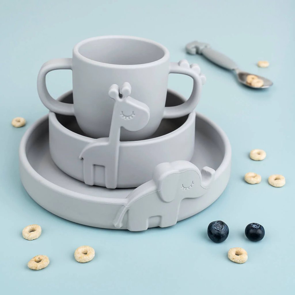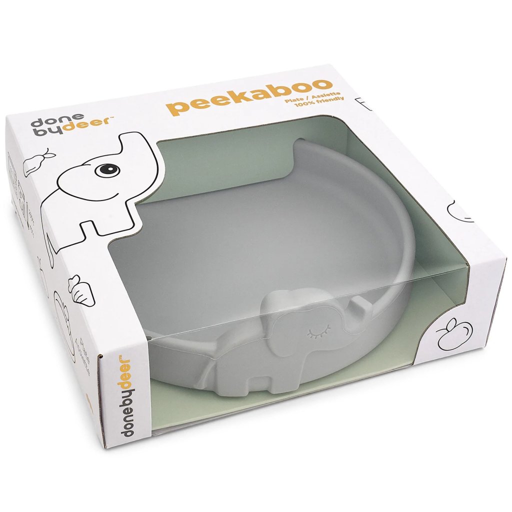 Assiette pour enfants PEEKABOO ELPHEE 16 cm, gris, silicone, Done by Deer