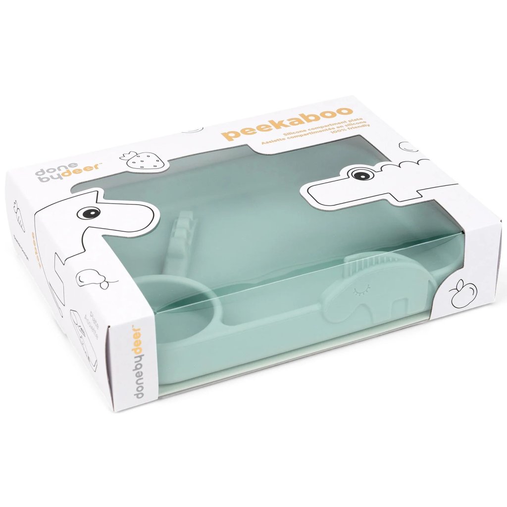 Assiette à compartiments pour enfants PEEKABOO, bleu, silicone, Done by Deer