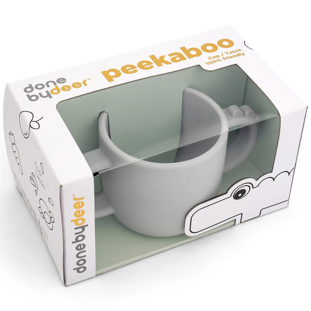 Verre avec poignées pour enfants PEEKABOO CROCO 170 ml, gris, Done by Deer