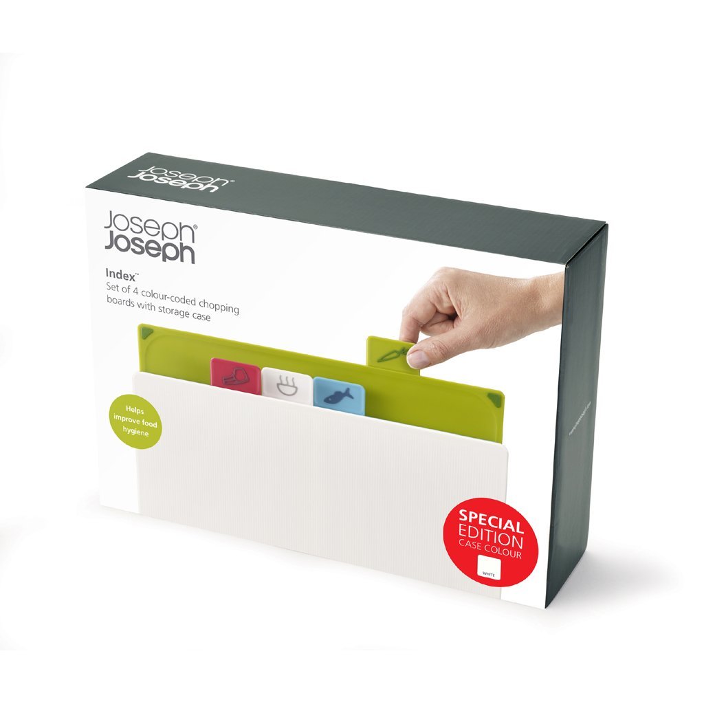 Set de planche à découper INDEX 30 x 20 cm, avec support, blanc, Joseph Joseph