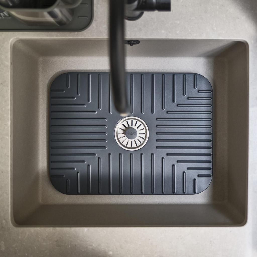 - Le tapis d'évier Joseph Joseph SINKSHIELD aide à protéger l'évier et la vaisselle pendant le lavage tout en créant un espace de séchage pratique directement à l'intérieur de l'évier.