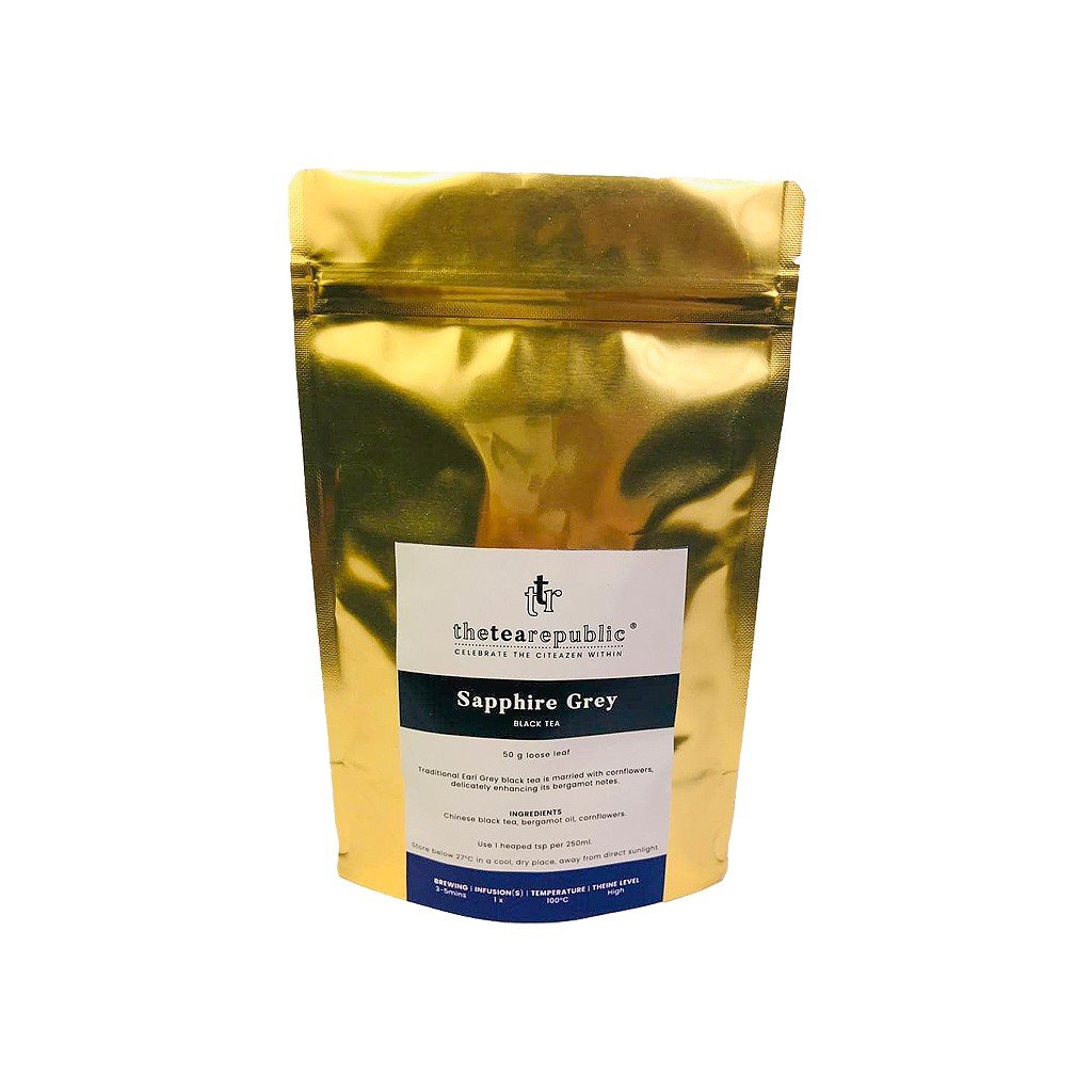Thé noir SAPPHIRE GREY, sachet de 50 g de feuilles de thé en vrac, The Tea Republic