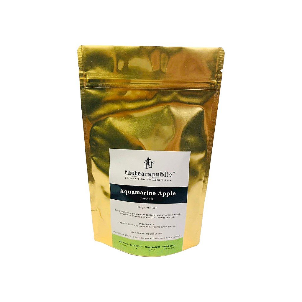 Thé vert AQUAMARINE APPLE, sachet de 50 g de feuilles de thé en vrac, The Tea Republic
