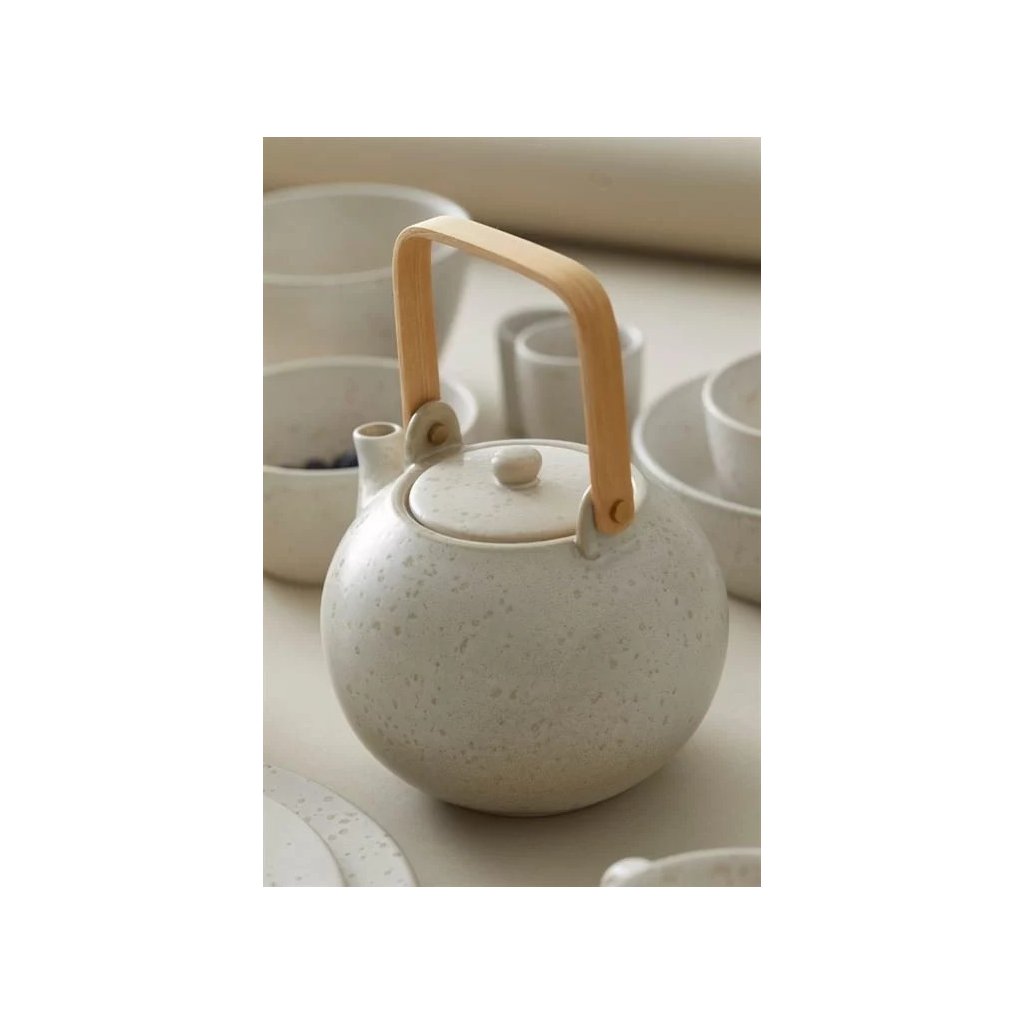 Théière 1,2 l, avec manche en bois, crème mat, Bitz