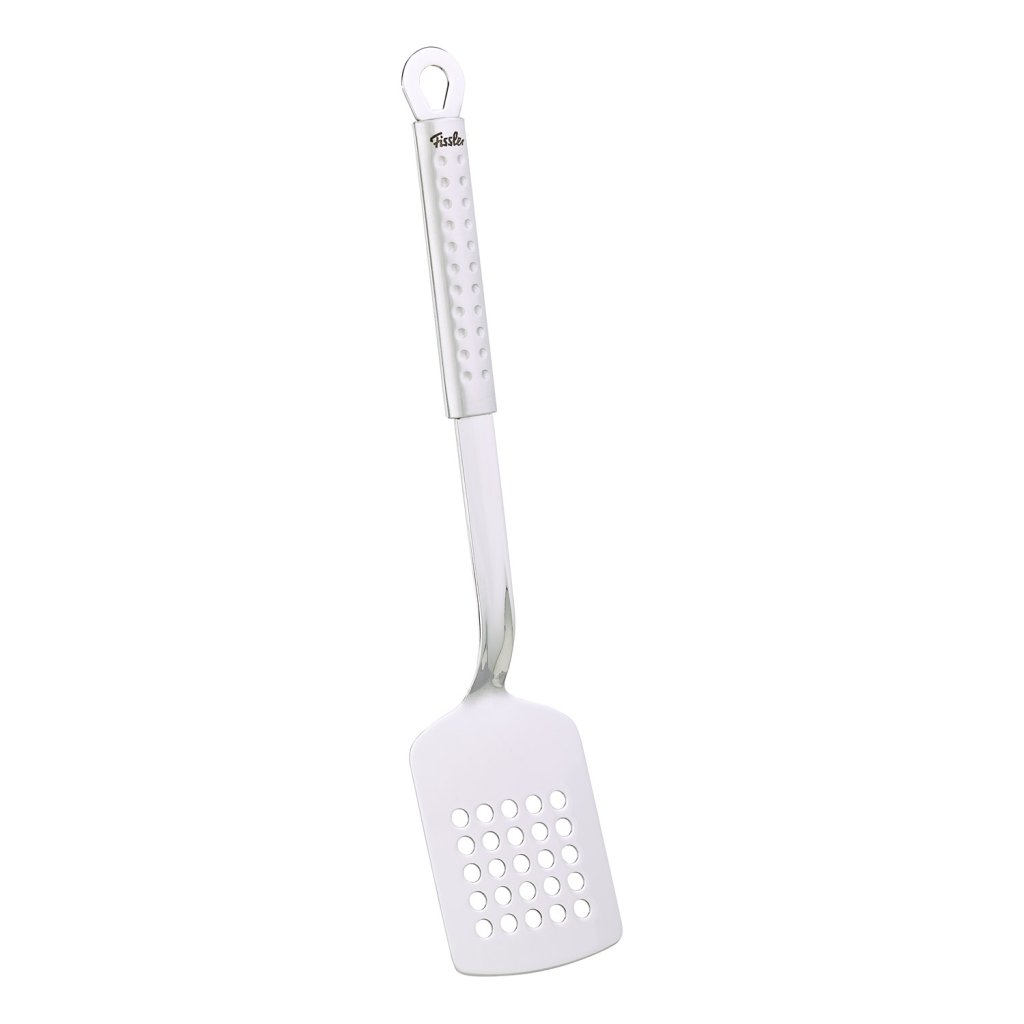 Le retourneur perforé est utilisé pour retourner les ingrédients dans la poêle. Sa forme plate permet de retourner les aliments les plus délicats. La perforation empêche la matière première de coller à la surface du retourneur. Vous pouvez également improviser et l'utiliser pour portionner et servir des lasagnes ou des plats gratinés.