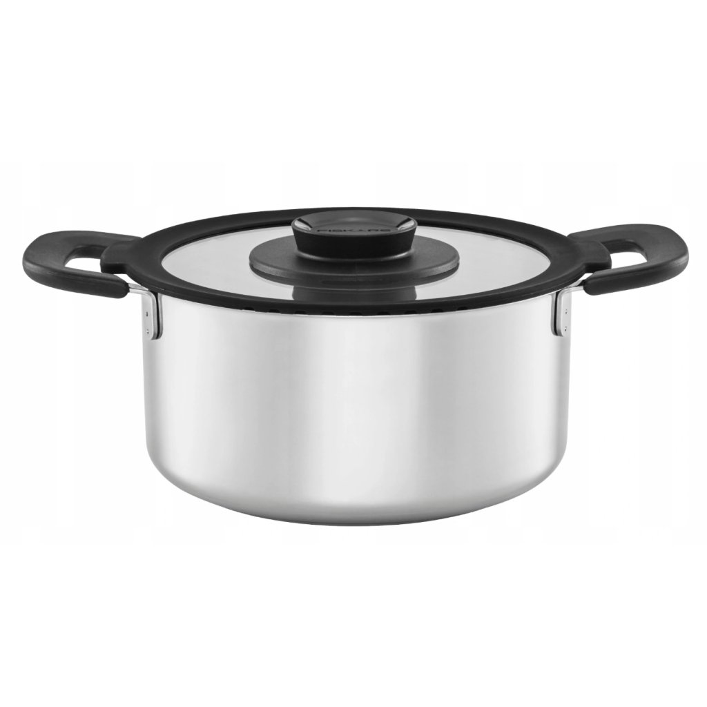 La casserole de 3 litres est fabriquée en acier inoxydable 18/10 très résistant , de sorte que la surface se réchauffe rapidement et convient à tous les types de plaques de cuisson.